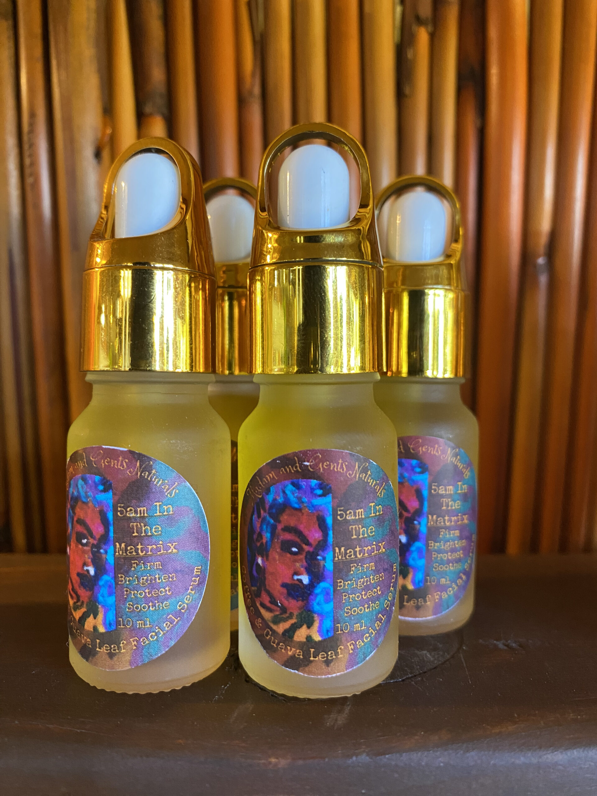 5am in the Matrix is a very unique combination of 17 high quality oils and skin conditioning essential oils designed to uplift you, wake you up and get you ready for your day! This Special serum serves as the base to our beloved “Sweet Cheeks” Coffee/ Guava Leaf Scrub. Created to help strengthen skin and give a more toned and youthful appearance while also helping to reduce inflammation and the appearance of stretch marks and scars. Infused with both Guava leaves and Ethiopian coffee, “5am” is a powerhouse of highly medicinal oils known to contain antimicrobial, antibacterial, antifungal, antiseptic and anti viral properties that can help protect the skin from harmful bacteria known to cause breakouts while working to stimulate collagen production and encourage healthy, youthful, glowing skin.